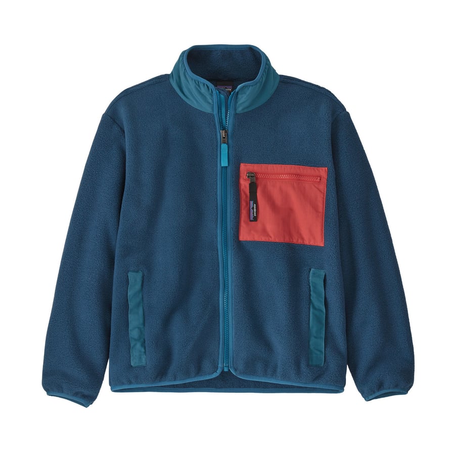 Kids Synchilla Jacket to klasyczna kurtka Patagonia dla dzieci, zapinana na zamek błyskawiczny, wykonana z ciepłego, dwustronnego polaru poliestrowego w 100% pochodzącego z recyklingu, z kontrastowym nylonowym materiałem przy kołnierzu i kieszeni.