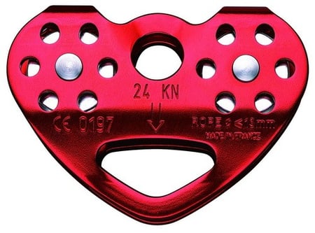 Podwójny bloczek o okładkach nieruchomych i łożyskach samosmarujących. Dzięki umieszczeniu obu rolek w jednej płaszczyźnie ma lepszą stabilność Jest idealny do tyrolek (wersja czerwona).