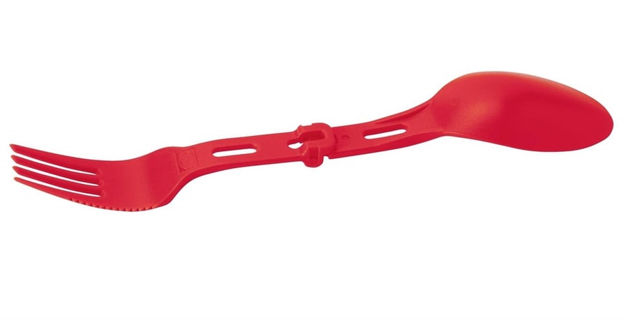 Bardzo praktyczne rozwiązanie na każdy biwak – łyżka i widelec w jednym. Wykonany z plastiku. Składany, więc zmieścisz go nawet w kieszeni spodni.