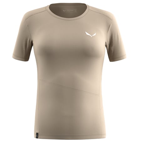 Koszulka damska Salewa Puez Sporty Dry W T-Shirt quicksand to techniczna koszulka zaprojektowana z myślą o letnich wędrówkach i trekkingu w górach. Wykonana z materiału DRY'TON, który zapewnia szybkie odprowadzanie wilgoci oraz szybkie schnięcie, co utrzymuje komfort nawet podczas intensywnego wysiłku. Czterokierunkowa elastyczność tkaniny oraz klasyczny krój z okrągłym dekoltem gwarantują swobodę ruchów i wygodne dopasowanie.