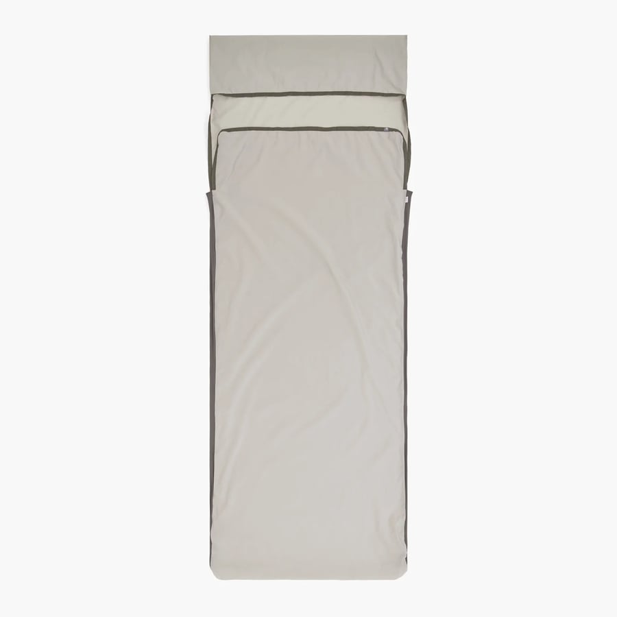 Silk Blend Sleeping Bag Liner - Rectangular w/ Pillow Sleeve to lekka wkładka do śpiwora wykonana z mieszanki jedwabiu i syntetycznych włókien, łącząca miękkość i trwałość. Prostokątny kształt zapewnia swobodę ruchów, a specjalna kieszeń na poduszkę zwiększa komfort snu. Poprawia higienę, chroni śpiwór przed zabrudzeniami i może być używana samodzielnie w ciepłe noce. Idealna do podróży i trekkingu.