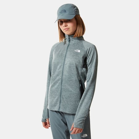 Miękka i oddychająca bluza damska o technicznym kroju. Z otworami na kciuki i zamkiem na całej długości. The North Face AO Midlayer FZ noszona pod grubszą kurtką lub solo zapewni ci ciepło podczas trekkingów i atakowania szczytów.