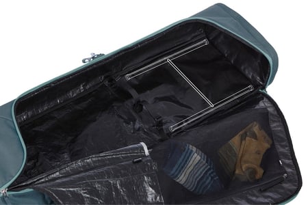 Pasy kompresyjne (zewnętrzne i wewnętrzne) zapobiegają przesuwaniu się sprzętu. Wyściełane pokrowce ze ściągaczami umożliwiają zachowanie porządku w torbie i zabezpieczają narty i odzież przed uszkodzeniem. Wyściełaną przegrodę możesz wyjąć, oddzielić nią narty i traktować jako osłonę usztywniającą. Z kolei w wewnętrznej kieszeni z zamkiem błyskawicznym schowasz ubrania i inne akcesoria.Transport torby ułatwiają płynnie obracające się kółka i rączki, które rozmieszczono na końcach, górze i bokach.
