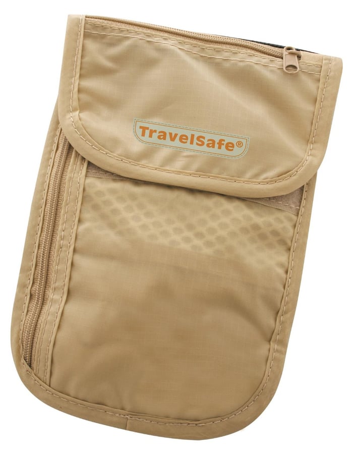 Saszetka na szyję TravelSafe Check Out z dwoma kieszeniami zapinanymi na zamek i trzema przegrodami na wszelkiego rodzaju dokumenty podróżne. Wszystkie krawędzie i szwy są miękkie dla skóry, tył został podszyty przyjemnym dla skóry materiałem Coolmax®, o wysokiej chłonności i odprowadzający wilgoć.