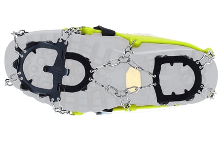 Soltoro to model idealny na oblodzone powierzchnie. Wykonane ze stali nierdzewnej, wyposażone w 13 kolców o długości 15 mm, elastyczną gume i regulowany pasek zabezpieczający raczki.